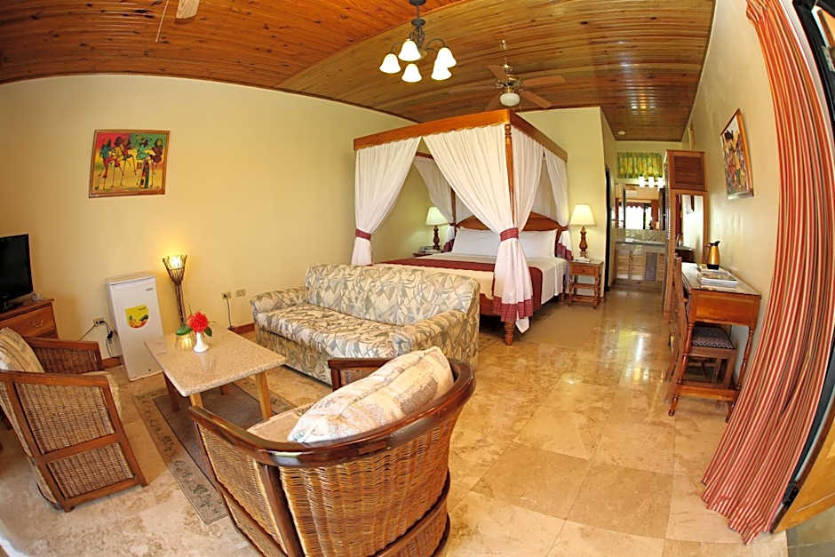 Direct access to Negril's beachfront comes with a private beach area, ideal for sun and surf. Snorkeling is available for an extra charge, and airport shuttles or other routes can be arranged for a fee. A bar and terrace overlook the garden and water, rounding out the laid-back coastal vibe.